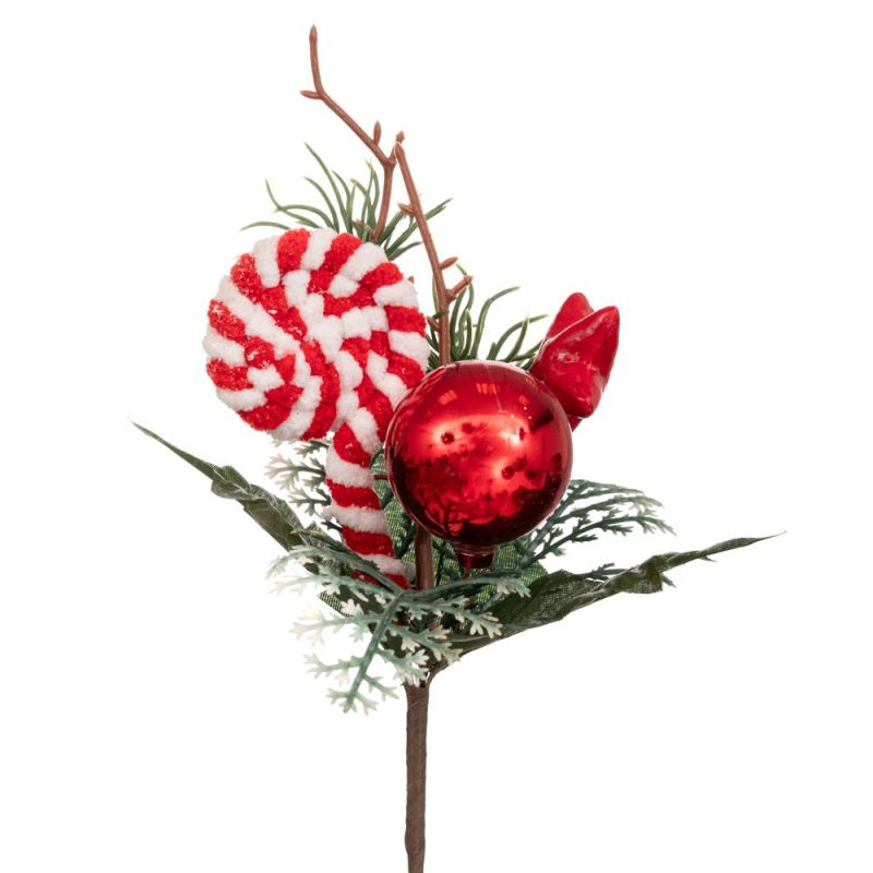 ДЕКОРАТИВЕНА ЗЕЛЕНА КЛОНКА С ЧЕРВЕНИ ОРНАМЕНТИ 22 СМ