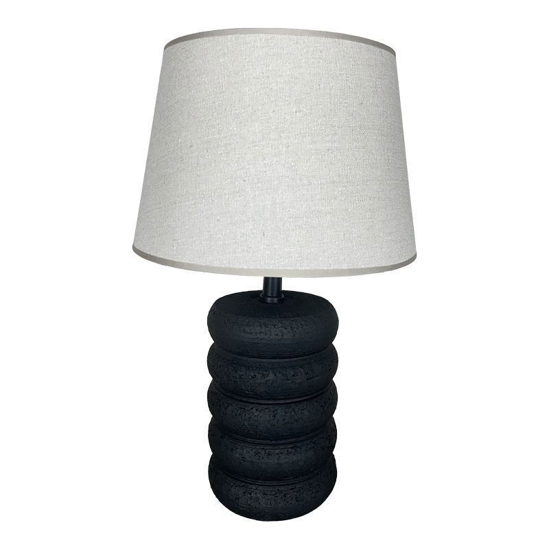 КЕРАМИЧНА НАСТОЛНА ЛАМПА GRAIKE E27 С ЧЕРНО-БЕЖОВ АБАЖУР, ДИАМЕТЪР 26X37 СМ