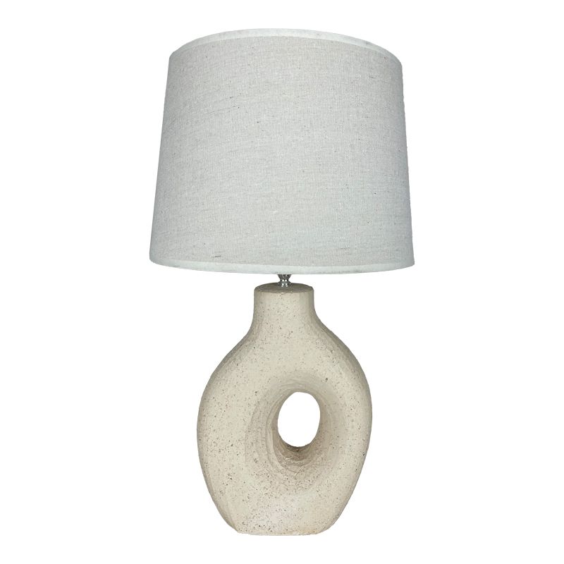 КЕРАМИЧНА НАСТОЛНА ЛАМПА OVOLA E27 С БЕЖОВ АБАЖУР D30X52 СМ