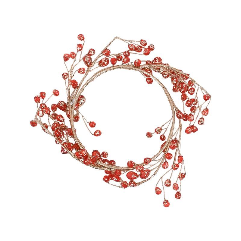 КОЛЕДЕН ВЕНЕЦ БЕЖОВ С ЧЕРВЕНИ ОРНАМЕНТИ 11СМ