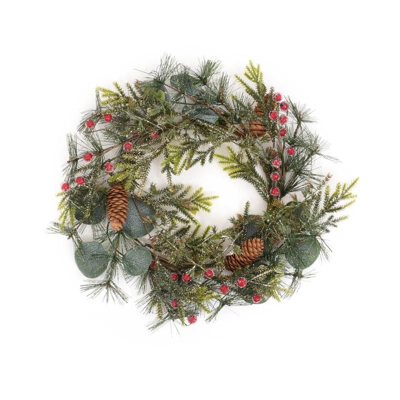КОЛЕДЕН ВЕНЕЦ С ШИШАРКИ И ЗЕЛЕНО-ЧЕРВЕН ГИРЛЯНД 41СМ