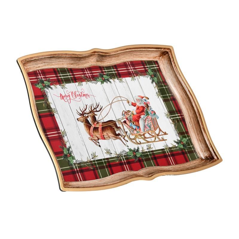 КОЛЕДЕН ПЛАСТМАСОВ ПОДНОС FL10281 ЧЕРВЕНО-БЯЛА 35X24X3СМ