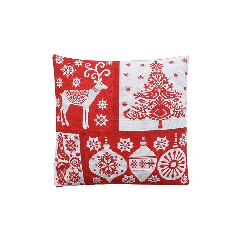 КОЛЕДНА ДЕКОРАТИВНА ВЪЗГЛАВНИЦА FL029 ЧЕРВЕНО-БЯЛ ЦВЯТ 44X44X10СМ