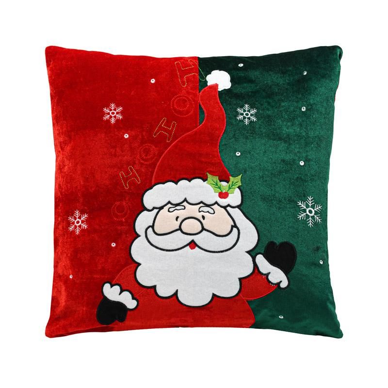 КОЛЕДНА ДЕКОРАТИВНА ВЪЗГЛАВНИЦА ДЯДО КОЛЕДА FL112 ЧЕРВЕНО-ЗЕЛЕНО-БЯЛО 42X42X5СМ