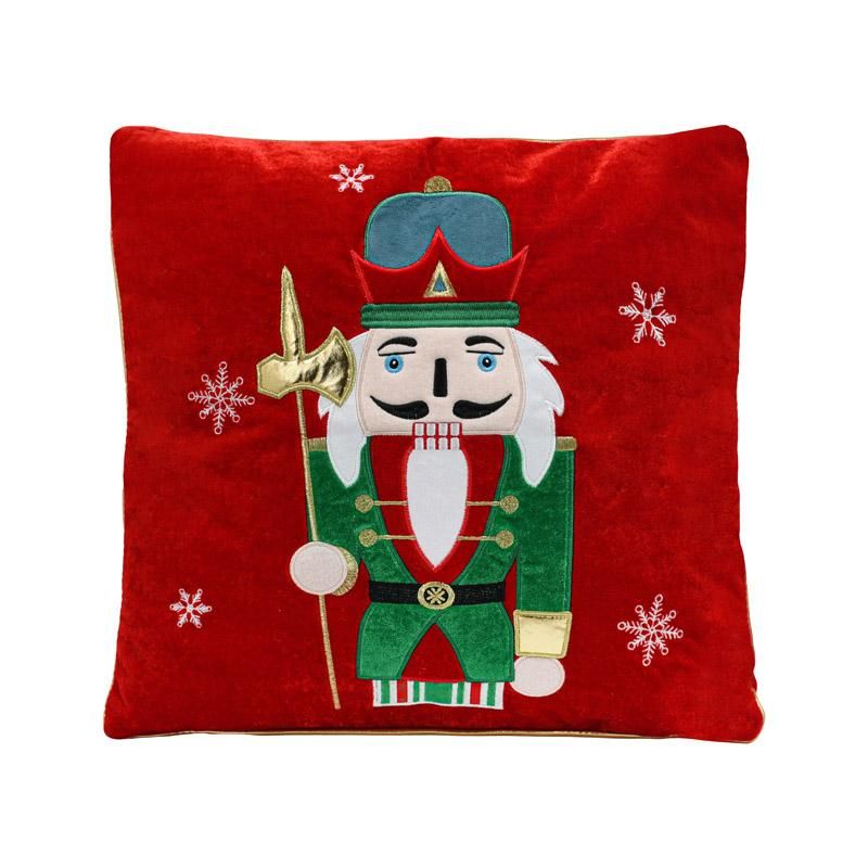 КОЛЕДНА ДЕКОРАТИВНА ВЪЗГЛАВНИЦА ЛЕШНИКОТРОШАЧКА FL133 ЧЕРВЕНО-ЗЕЛЕНО-БЯЛО 42X42X5СМ