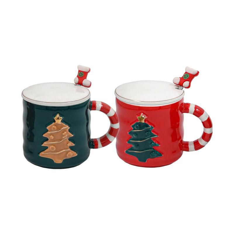 КОЛЕДНА ЧАША С ЛЪЖИЦА 1/2 FL1664 ЗЕЛЕНО-ЧЕРВЕН ЦВЯТ 8X9СМ