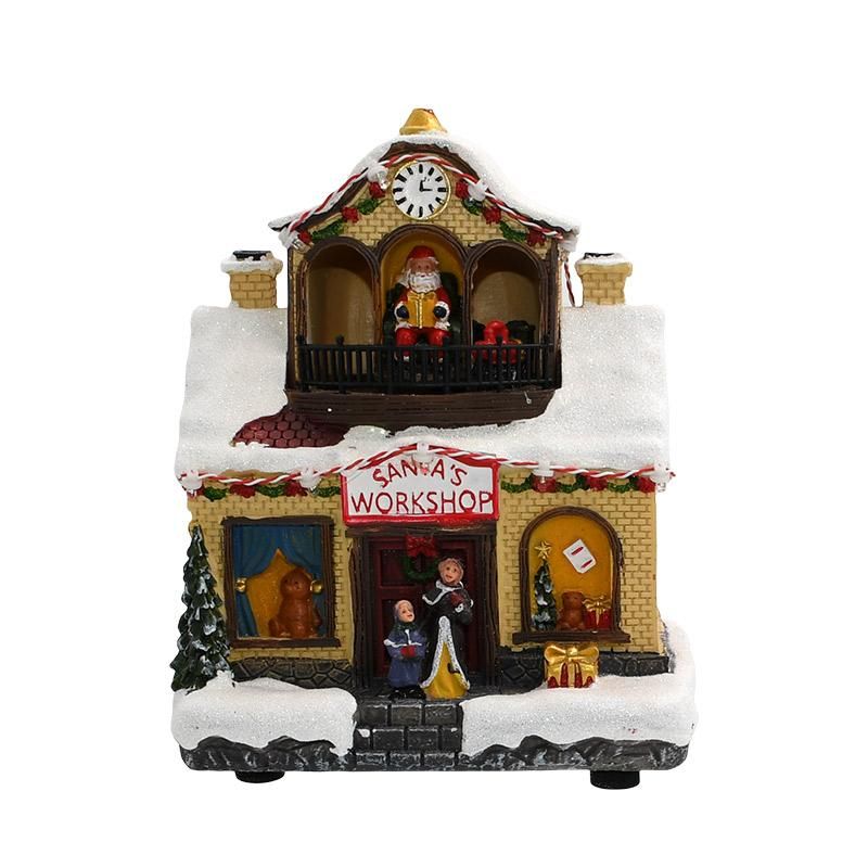 НАСТОЛНА КОЛЕДНА ДВУЕТАЖНА КЪЩА FL23017 С LED-МУЗИКА И ДВИЖЕНИЕ БЯЛО-ЗЛАТИСТО 17X13X21СМ