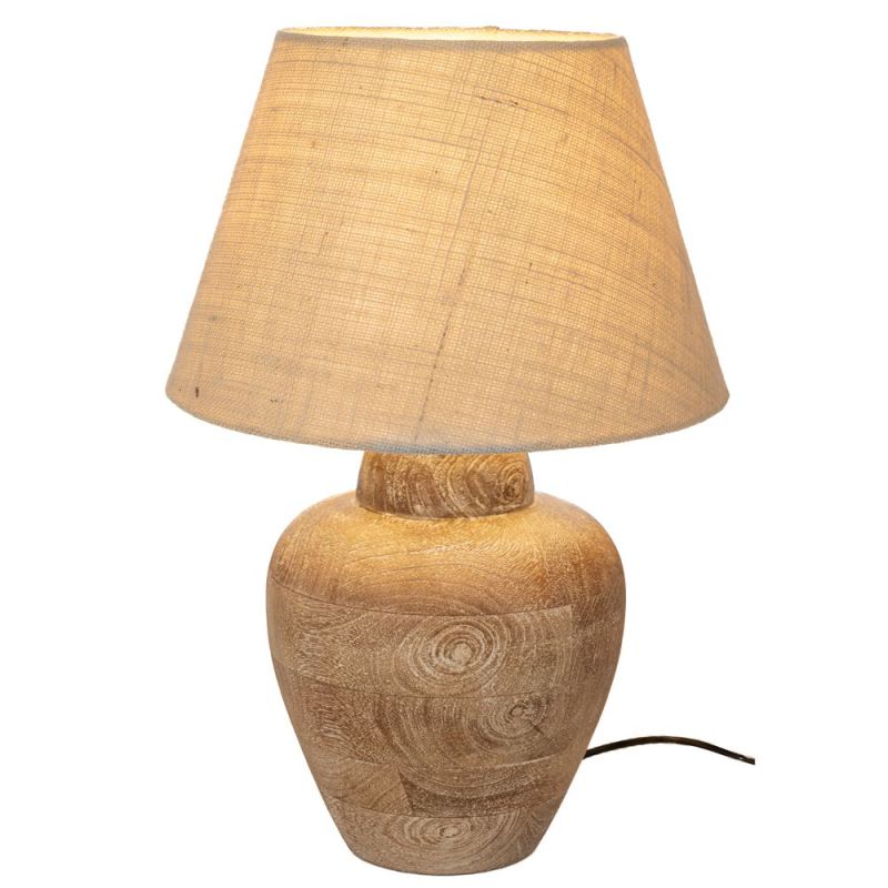 НАСТОЛНА ЛАМПА ОТ МАНГОВО ДЪРВО С КРЕМАВ АБАЖУР