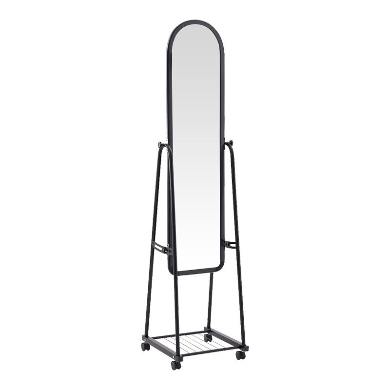 ОГЛЕДАЛО LOMNA С КОЛЕЛЦА И РАФТ ОТ PP-МЕТАЛ В ЧЕРЕН ЦВЯТ, 38.5X37.5X160СМ