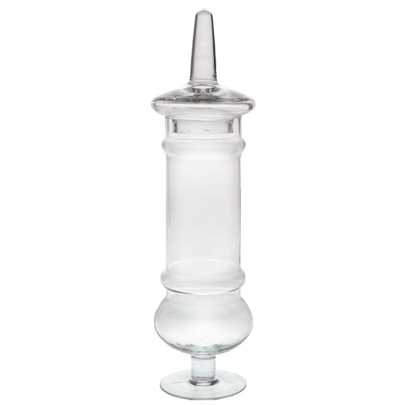 ПРОЗРАЧНА СТЪКЛЕНА ВАЗА НА КРАК С КАПАК D8X40 СМ