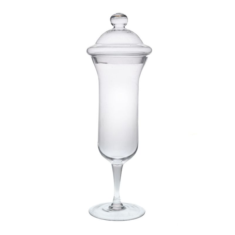 ПРОЗРАЧНА СТЪКЛЕНА ВАЗА НА КРАК С КАПАК, 19X55 СМ