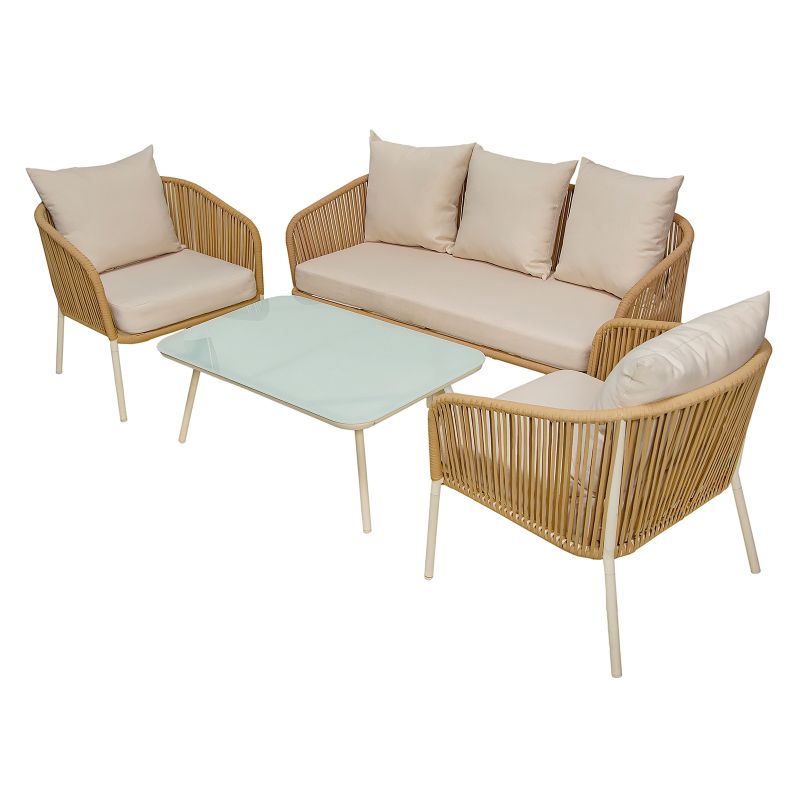 SALSA ROPE КОМПЛЕКТ САЛОН ЗА ГРАДИНА ALU, ЦВЕТОВЕ БЕЖОВО-КРЕМ: МАСИЧКА + 2 МЕСТА ДИВАН+ 2 ГРАДИНСКИ СТОЛА Ε256,2