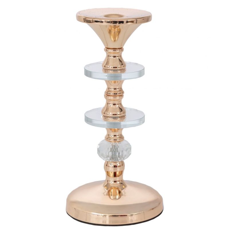 ЗЛАТИСТ МЕТАЛЕН СВЕЩНИК С АКРИЛНИ ДЕТАЙЛИ, 11X23 СМ