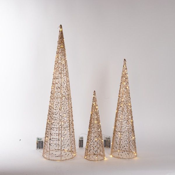 ЗЛАТИСТИ КОНУСИ 40/60/80 СМ, 3 ДИЗАЙНА, 20/30/40 МИНИ LED, КУТИЯ ЗА БАТЕРИИ 2XAA/3XAA, ТАЙМЕР, СРЕБЪРНИ МЕДНИ КАБЕЛИ ЗЛАТИСТА МЕТАЛНА РАМКА, ТОПЛО БЯЛ LED, КАБЕЛ 30 СМ, IP44