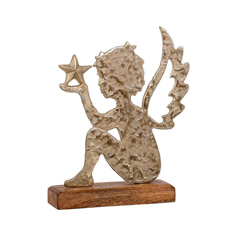 КОЛЕДЕН ДЕКОРАТИВЕН АЛУМИНИЕВ АНГЕЛ С ДЪРВЕНА ОСНОВА FL1723 ЗЛАТИСТ ЦВЯТ 19x5x24см