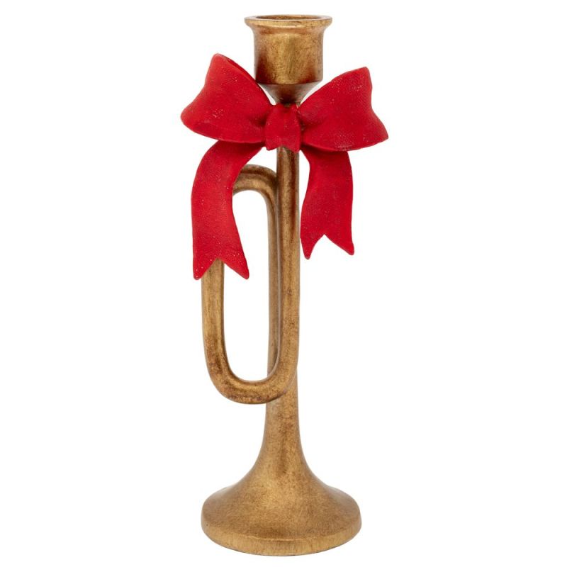 КОЛЕДЕН СВЕЩНИК ОТ ЗЛАТЕН ПОЛИРЕЗИН С ЧЕРВЕНА ПАНДЕЛКА 10X8,5X26СМ