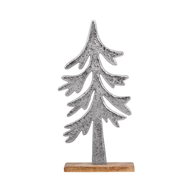 КОЛЕДНА ДЕКОРАТИВНА АЛУМИНИЕВА ЕЛХА FL1430 ДЪРВЕНА ОСНОВА СРЕБЪРИСТ ЦВЯТ 19x7x40см