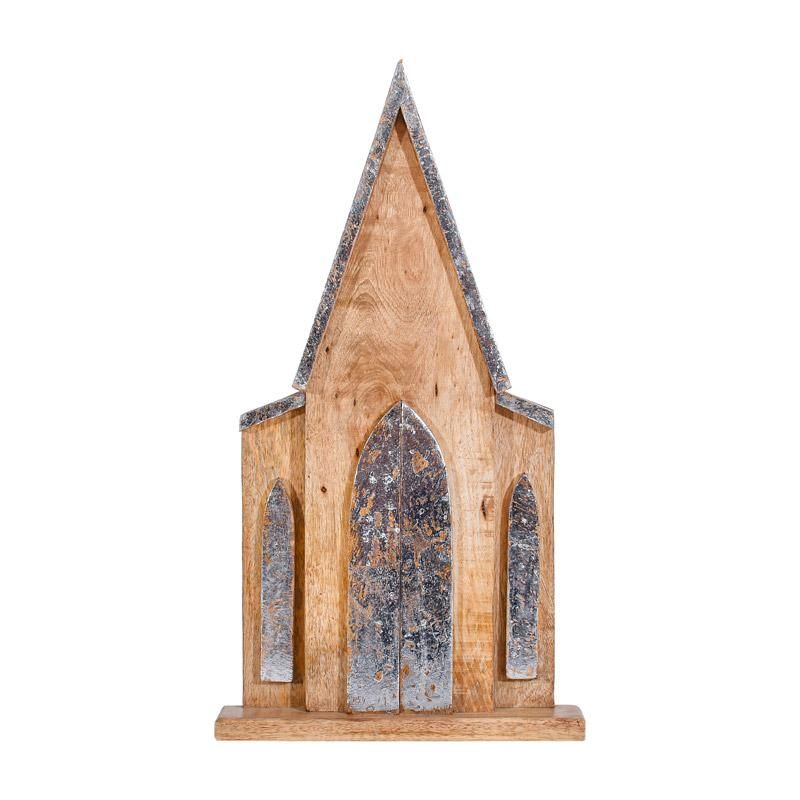 КОЛЕДНА ДЕКОРАТИВНА ДЪРВЕНА КЪЩИЧКА FL0649 СРЕБЪРЕН ЦВЯТ 28x7x61см