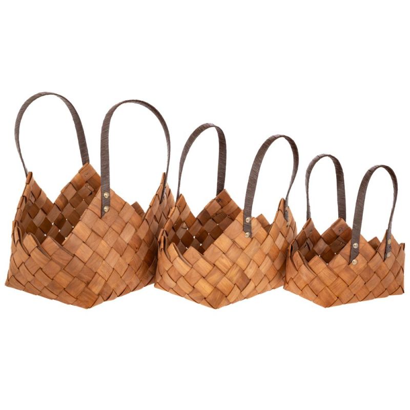 КОМПЛЕКТ 3 КОШНИЦИ С КОЖЕНИ ДРЪЖКИ - РАЗМЕРИ -33Χ23Χ37 29Χ18Χ29 24Χ14Χ21ΕΚ СМ