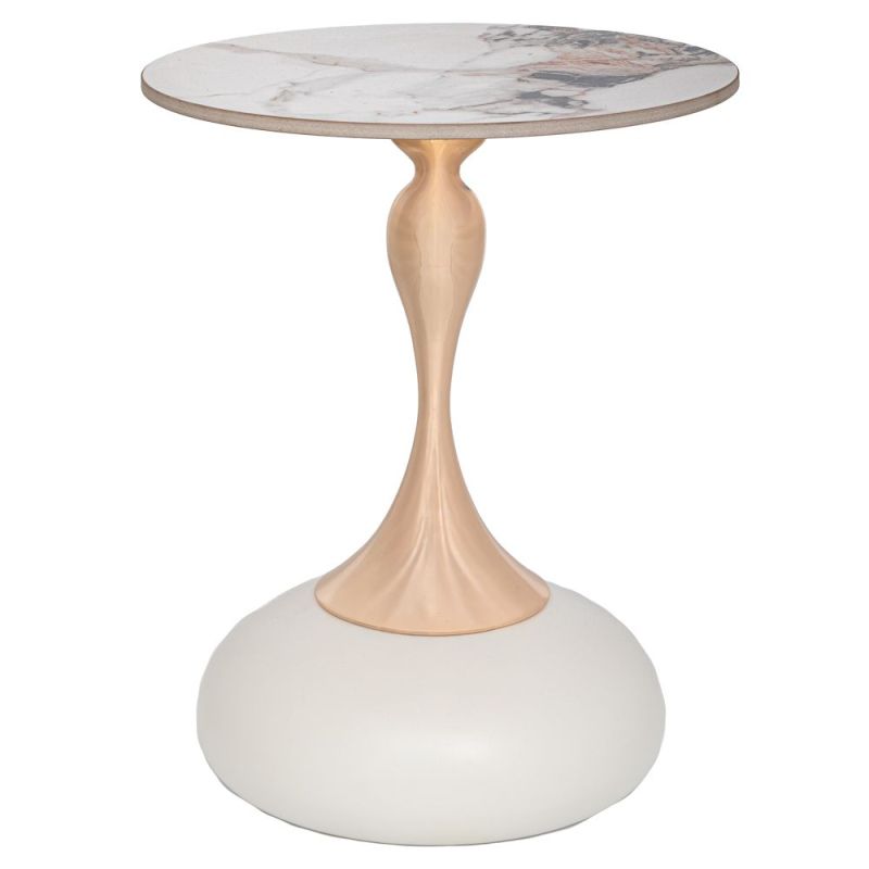 КРЕМАВА МЕТАЛНА МАСА СЪС ЗЛАТИСТА ОСНОВА И БЯЛА КЕРАМИЧНА ПОВЪРХНОСТ (МРАМОРЕН ЕФЕКТ)