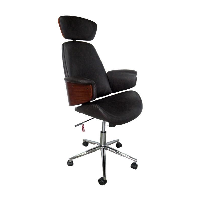 ОФИС СТОЛ ДИРЕКТОР FL921 СИВА ИЗКУСТВЕНА КОЖА С ОРЕХОВО ДЪРВО 68x68x125см
