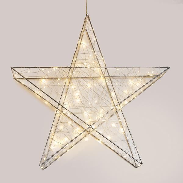 СВЕТЕЩА ЗВЕЗДА 110 СМ, 480 LED, 4,5V АДАПТЕР, ТАЙМЕР, СРЕБЪРНА МЕТАЛНА РАМКА, СРЕБЪРНА МЕДНА ЖИЦА, ТОПЛО БЯЛА LED СВЕТЛИНА, ЗАХРАНВАЩА ЖИЦА 5 М, IP44