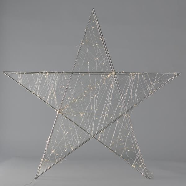 СВЕТЕЩА ЗВЕЗДА 78 СМ, 240 LED, АДАПТЕР, ТАЙМЕР, СРЕБЪРНА МЕТАЛНА РАМКА, СРЕБЪРНА МЕДНА ЖИЦА, ТОПЛО БЯЛА LED СВЕТЛИНА, ЗАХРАНИТЕЛЕН КАБЕЛ 5 М, IP44
