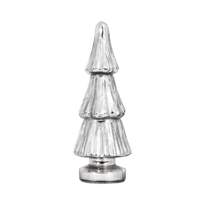 СТЪКЛЕНА КОЛЕДНА ДЕКОРАТИВНА ЕЛХА FL0674 СРЕБЪРЕН ЦВЯТ 10x10x30см