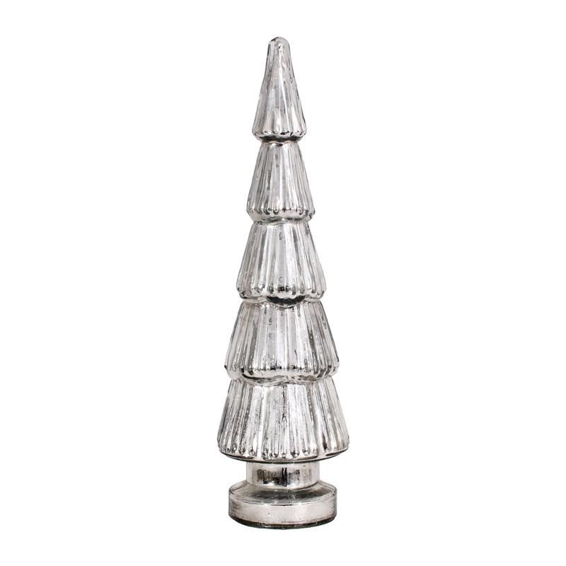 СТЪКЛЕНА КОЛЕДНА ДЕКОРАТИВНА ЕЛХА FL0674 СРЕБЪРЕН ЦВЯТ 12x12x47см