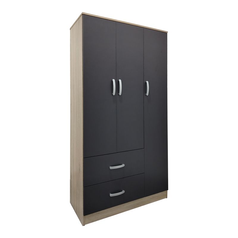 ТРИКРИЛЕН ГАРДЕРОБ С 2 ЧЕКМЕДЖЕТА LEGO В ЦВЯТ SONOMA-ТЪМНОСИВ 90X42X180СМ