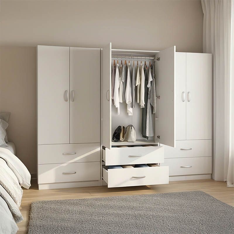 ГАРДЕРОБ С ШЕСТ КРИЛА И ЧЕКМЕДЖЕТА LEGO БЯЛ 240X42X180СМ