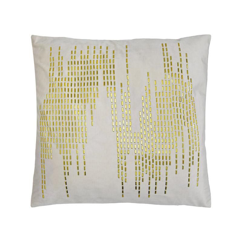 ДЕКОРАТИВНА ВЪЗГЛАВНИЦА, КРЕМАВО-ЗЛАТИСТ ЦВЯТ, 45x45x10см