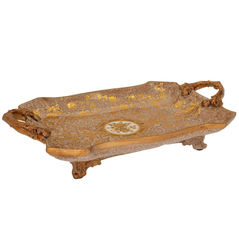 ДЕКОРАТИВНА ПОЛИРЕЗИНОВА ЧИНИЯ С ЦВЕТЯ И ЗЛАТНИ ДРЪЖКИ 38X24X9 СМ