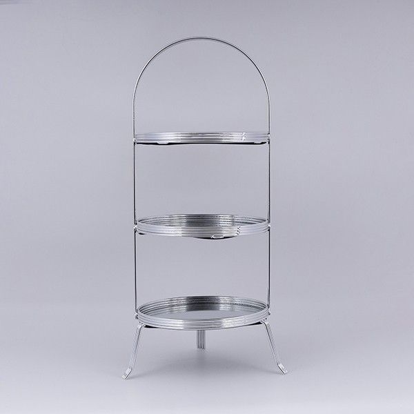 ДЕКОРАТИВНА ПОСТАВКА ЗА ТОРТА 3 ЕТАЖА, ОТ СТЪКЛО, СЪС СРЕБЪРНИ ДЕТАЙЛИ, 20X51СМ