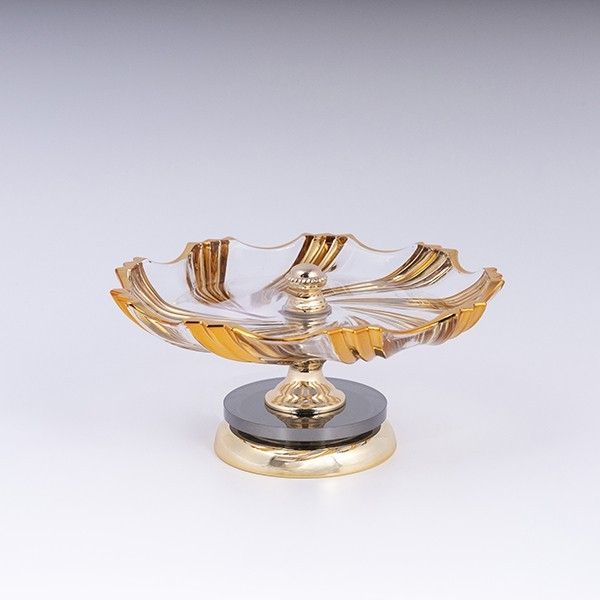 ДЕКОРАТИВНА ФРУКТИЕРА ОТ СТЪКЛО С МЕТАЛНИ АКЦЕНТИ, ЗЛАТИСТ 23X17СМ