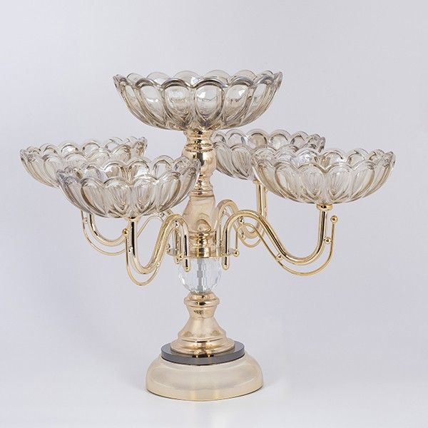 ДЕКОРАТИВНА ФРУКТИЕРА ОТ СТЪКЛО С МЕТАЛНИ АКЦЕНТИ, ЗЛАТИСТ 35X35СМ