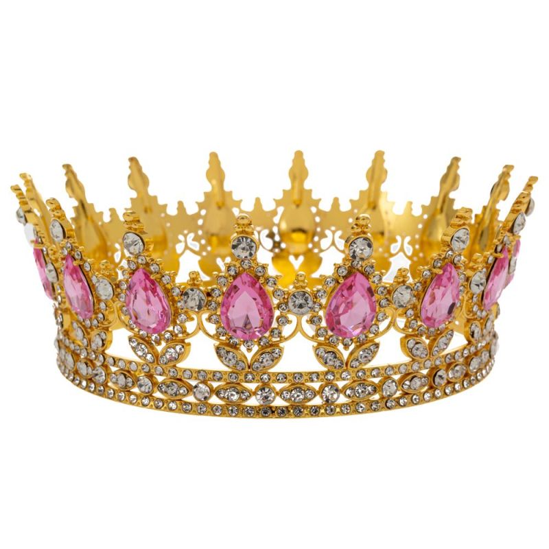 ЗЛАТНА МЕТАЛНА КОРОНА С РОЗОВИ СКЪПОЦЕННИ КАМЪНИ 12X5.5 СМ