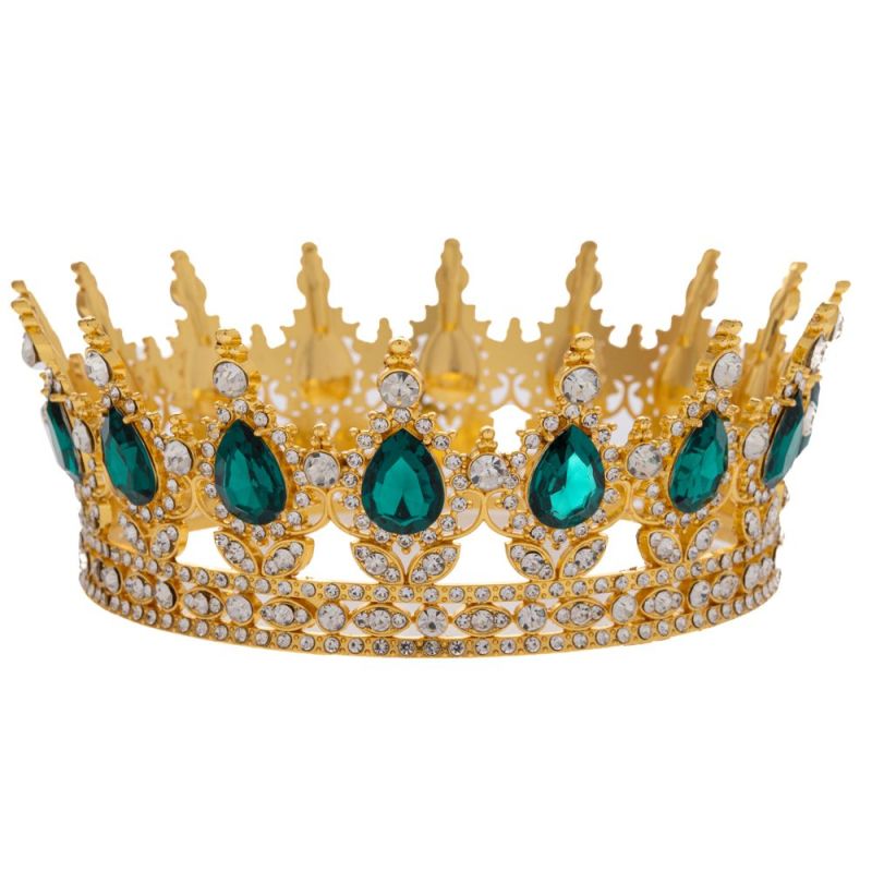 ЗЛАТНА МЕТАЛНА КОРОНА СЪС ЗЕЛЕНИ КАМЪНИ 12X5.5 СМ