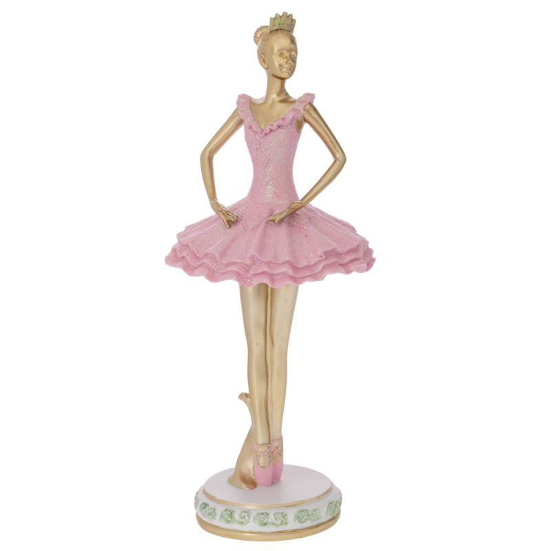 ЗЛАТНА ПОЛИРЕЗИНОВА БАЛЕРИНА С РОЗОВА РОКЛЯ 15X15X37СМ
