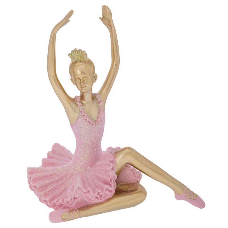 ЗЛАТНА ПОЛИРЕЗИНОВА БАЛЕРИНА С РОЗОВА РОКЛЯ 16X10X17СМ