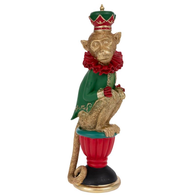 ЗЛАТНА ПОЛИРЕЗИНОВА МАЙМУНА С ЗЕЛЕН КОСТЮМ 11X10X34СМ