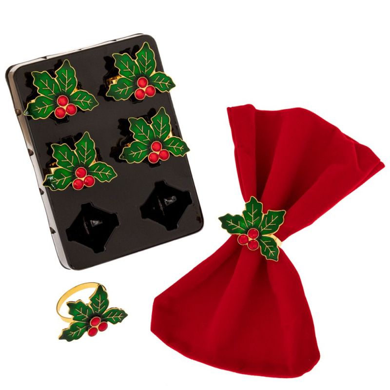 КОЛЕДЕН КОМПЛЕКТ ОТ 6 ПРЪСТЕНА ЗА САЛФЕТКИ С ИМЕЛ