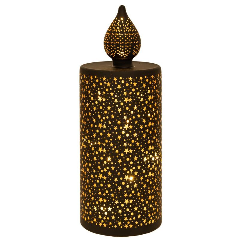 КОЛЕДНА ЧЕРНА СТЪКЛЕНА СВЕЩ СЪС ЗВЕЗДИ 7,5X7,5X21СМ, РАБОТИ С БАТЕРИИ
