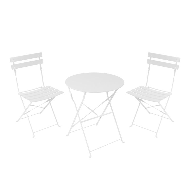 КОМПЛЕКТ БИСТРО ТРАПЕЗАРНА МАСА ОТ 3 ЧАСТИ, МЕТАЛНА, СГЪВАЕМА, БЯЛ ЦВЯТ, 60X71 СМ