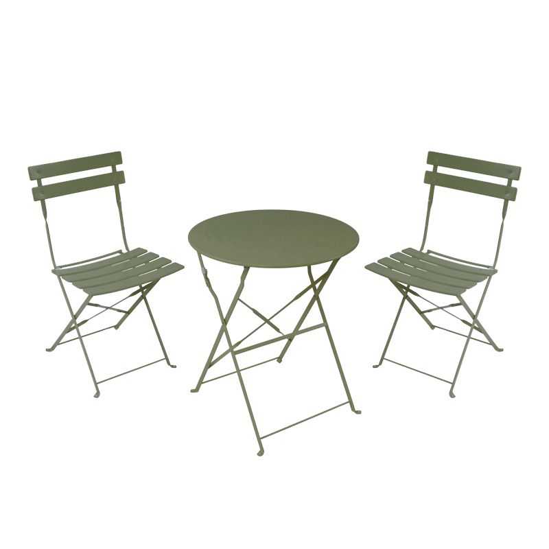 КОМПЛЕКТ БИСТРО ТРАПЕЗАРНА МАСА ОТ 3 ЧАСТИ, МЕТАЛНА, СГЪВАЕМА, ЦВЯТ МАСЛИНЕНО ЗЕЛЕНО, 60X71 СМ