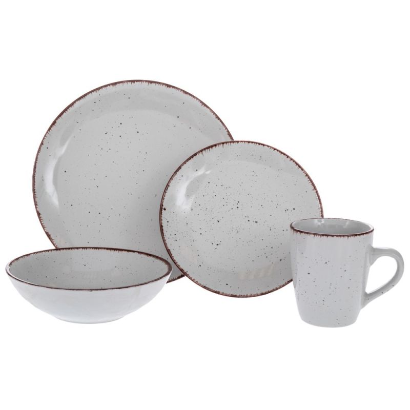 КОМПЛЕКТ ОТ 16 ЧАСТИ СИВ КЕРАМИЧЕН СЕРВИЗ С КАФЯВА ЛИНИЯ