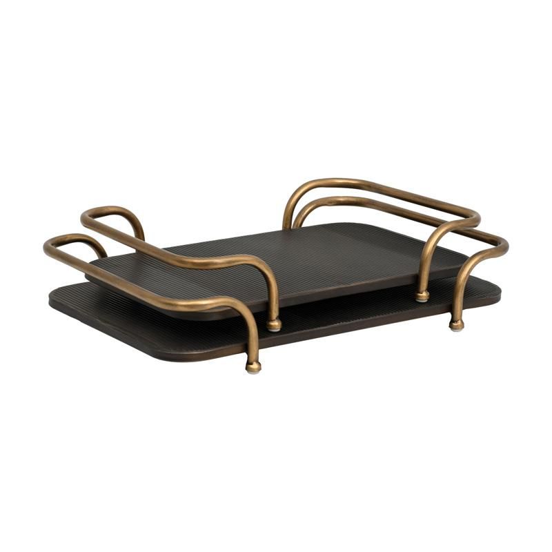 КОМПЛЕКТ ОТ 2 МЕТАЛНИ ПОДНОСА FL365 ЧЕРНО-БРОНЗОВ ЦВЯТ 41X29X9СМ