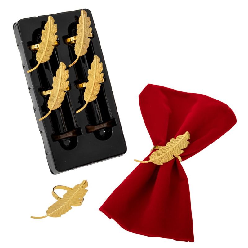 КОМПЛЕКТ ОТ 6 ПРЪСТЕНА ЗА САЛФЕТКИ СЪС ЗЛАТНA ЛИСТИЧКА