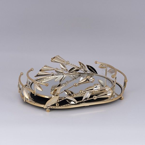 МЕТАЛНИ ПОДНОСА S/2 С ОГЛЕДАЛО ЗЛАТИСТО 36X26 / 30X20СМ