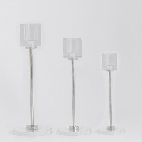 СВЕЩНИК S/3 С МЕТАЛНА ОСНОВА, СРЕБЪРЕН 7X25СМ / 7X20СМ / 7X15СМ